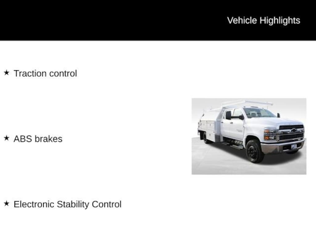 We Buy cars- Fast, Fair and Easy This 2024 Summit White Chevrolet Silverado 5500HD Work Truck RWD is well equipped and includes these features and benefits: ABS brakes, Electronic Stability Control, Traction control, 4.10 Rear Axle Ratio, Air Conditioning, Delay-off headlights, Driver door bin, Dual front impact airbags, Dual front side impact airbags, Dual rear wheels, Exterior Parking Camera Rear, Front Center Armrest w/Storage, Front reading lights, Frontal Passenger-Side Airbag Deactivation Switch, Fully automatic headlights, Occupant sensing airbag, Overhead airbag, Overhead console, Passenger cancellable airbag, Passenger door bin, Power steering, Premium audio system: Chevrolet MyLink, Single-Zone Air Conditioning, Speed control, Tachometer, Tilt steering wheel, Trip computer, Variably intermittent wipers, Voltmeter, and Wheels: 19.5 x 6.75 Black Painted Hub Piloted Steel w/8-Holes.