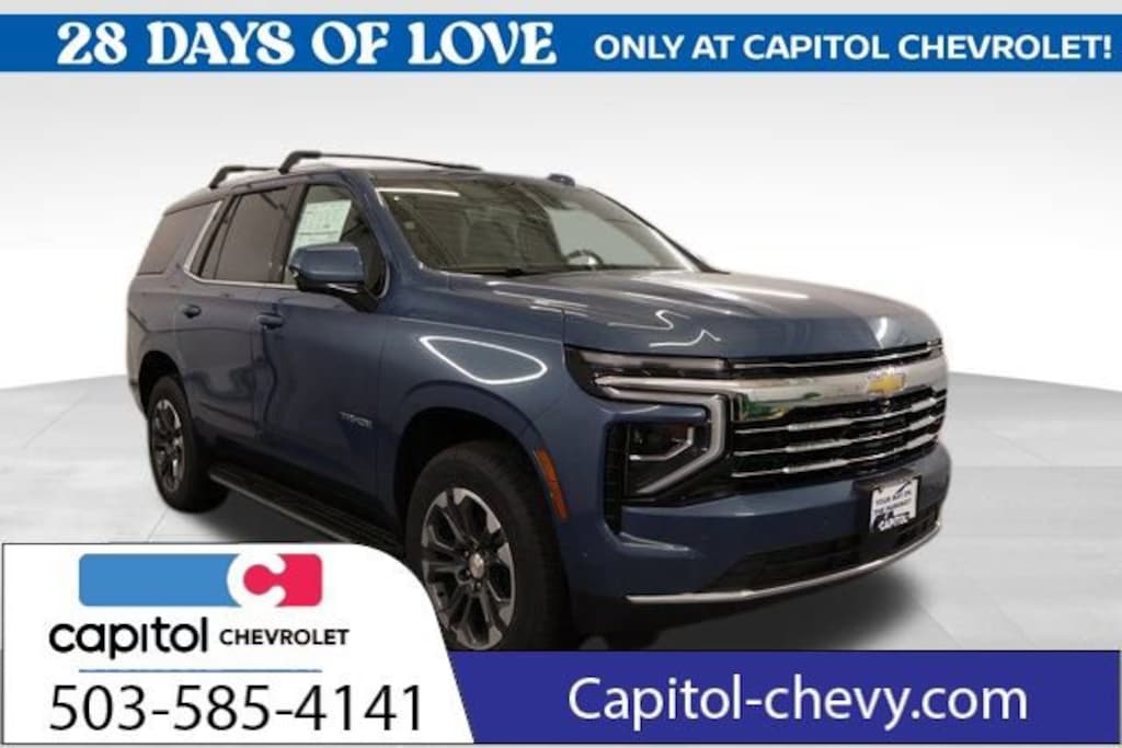 We Buy cars- Fast, Fair and Easy This 2026 Lakeshore Blue Metallic Chevrolet Tahoe LT 4WD is well equipped and includes these features and benefits: Hit the Road Package (Black Roof Rack Cross Rails and Console Mounted Safe), License Plate Front Mounting Package, Preferred Equipment Group 1LT (1st and 2nd Row Color-Keyed Carpeted Floor Mats, 3-Spoke Wrapped Steering Wheel, 3rd Row Manual 60/40 Split-Folding Bench Seats, Color-Keyed Carpeting Floor Covering, Floor Console with Storage Area, Front Bucket Seats, Frontal Driver and Outboard Passenger Airbags, Interior Camera, Key Card, Memory Settings For Driver, Rear Power Liftgate, Remote Start, SiriusXM with 360L Trial Subscription, USB Ports, and Wireless Phone Charging), 2-Way Power Driver Lumbar Seat Adjuster, 2-Way Power Front Passenger Lumbar Seat Adjuster, 3.23 Rear Axle Ratio, 3rd row seats: split-bench, 4-Wheel Disc Brakes, 6 Speakers, 6-Speaker Audio System Feature, 8-Way Power Driver Seat Adjuster, 8-Way Power Front Passenger Seat Adjuster, ABS brakes, Air Conditioning, Alloy wheels, AM/FM radio: SiriusXM with 360L, Apple CarPlay/Android Auto, Auto High-beam Headlights, Automatic temperature control, Brake assist, Bumpers: body-color, Compass, Delay-off headlights, Driver door bin, Driver vanity mirror, Dual front impact airbags, Dual front side impact airbags, Electronic Stability Control, Emergency communication system: OnStar and Chevrolet connected services capable, Exterior Parking Camera Rear, Four wheel independent suspension, Front anti-roll bar, Front Center Armrest, Front dual zone A/C, Front reading lights, Fully automatic headlights, Heated door mirrors, Heated Driver and Front Passenger Seats, Heated front seats, Illuminated entry, Leather-Appointed Seat Trim, Low tire pressure warning, Memory seat, Navigation system: Google built-in compatibility (select service plan required, terms and limitations apply), Occupant sensing airbag, Outside temperature display, Overhead airbag, Overhead console, Panic alarm, Passenger door bin, Passenger vanity mirror, Power door mirrors, Power driver seat, Power Liftgate, Power passenger seat, Power steering, Power windows, Premium audio system: Chevrolet Infotainment 3 Premium, Premium Smooth Ride Suspension, Radio data system, Radio: 17.7 Diagonal Advanced Color LCD Display, Rain sensing wipers, Rear air conditioning, Rear anti-roll bar, Rear reading lights, Rear seat center armrest, Rear window defroster, Rear window wiper, Remote keyless entry, Security system, Speed control, Speed-sensing steering, Split folding rear seat, Spoiler, Steering wheel mounted audio controls, Tachometer, Telescoping steering wheel, Tilt steering wheel, Traction control, Trip computer, Variably intermittent wipers, Voltmeter, Wheels: 18 x 8.5 Bright Silver Painted Aluminum, and Wheels: 20 x 9 Machined Aluminum.