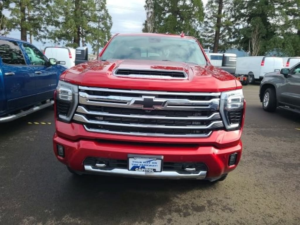 We Buy cars- Fast, Fair and Easy This 2024 Radiant Red Tintcoat Chevrolet Silverado 3500HD High Country 4WD is well equipped and includes these features and benefits: Technology Package (Adaptive Cruise Control, Auto-Dimming Inside Rearview Mirror w/Camera, and Multicolor 15 Diagonal Head-Up Display), Preferred Equipment Group 3LZ (120-Volt Bed Mounted Power Outlet, 120-Volt Interior Power Outlet, 170 Amp Alternator, 6 Rectangular Chromed Tubular Assist Steps, Auto-Dimming Inside Rear-View Mirror, Bed View Camera w/2 Trailer Camera Provisions, Bluetooth® For Phone, Chevrolet Connected Access Capable, Chevytec Spray-On Black Bedliner, Chrome Door Handles, Chrome Mirror Caps, Color-Keyed Carpeting Floor Covering, Compass Located In Instrument Cluster, Deep-Tinted Glass, Electric Rear-Window Defogger, Front Carpeted Floor Mats, Front Chrome Recovery Hooks, Front LED Fog Lamps, Front Rain-Sensing Wipers, Heated 2nd Row Outboard Seats, Heated Steering Wheel, Hitch Guidance w/Hitch View, In-Vehicle Trailering App System, Keyless Open & Start, LED Cargo Area Lighting, Manual Tilt-Wheel/Telescoping Steering Column, OnStar & Chevrolet Connected Services Capable, Polished Exhaust Tip, Power Door Locks, Power Front Windows w/Driver Express Up/Down, Power Front Windows w/Passenger Express Up/Down, Power Rear Windows w/Express Down, Power Sliding Rear Window w/Defogger, Power Tailgate, Push Button Start, Rear Carpeted Floor Mats, Rear Cross Traffic Alert, Rear Wheelhouse Liners, Remote Vehicle Starter System, SiriusXM w/360L, Standard Tailgate, Steering Wheel Audio Controls, Steering Wheel Mounted Electronic Cruise Control, Trailer Camera Provisions, Trailer Side Blind Zone Alert, Ultrasonic Front & Rear Park Assist, Unauthorized Entry Theft-Deterrent System, Universal Home Remote, Wi-Fi Hotspot Capable, Wireless Charging, and Wrapped Steering Wheel), Suspension Package, Up-Level Rear Seat w/Storage Package, 10-Way Power Driver Seat Adjuster w/Lumbar, 10-Way Power Passenger Seat Adjuster w/Lumbar, 220 Amp Alternator, 4-Wheel Disc Brakes, 7 Speakers, ABS brakes, Air Conditioning, Alloy wheels, AM/FM radio: SiriusXM with 360L, Apple CarPlay/Android Auto, Auto High-beam Headlights, Auto-dimming door mirrors, Auto-dimming Rear-View mirror, Automatic temperature control, Bodyside moldings, Bose Premium 7-Speaker Sound System, Brake assist, Bumpers: body-color, Compass, Delay-off headlights, Driver door bin, Driver Memory, Driver vanity mirror, Dual front impact airbags, Dual front side impact airbags, Durabed Pickup Bed, Electronic Stability Control, Engine Block Heater, Exhaust Brake, Floor-Mounted Center Console, Front anti-roll bar, Front Black Bowtie Emblem (LPO), Front Bucket Seats, Front Center Armrest, Front dual zone A/C, Front fog lights, Front License Plate Kit, Front reading lights, Front wheel independent suspension, Fully automatic headlights, Garage door transmitter, Genuine wood console insert, Genuine wood dashboard insert, Genuine wood door panel insert, Heated door mirrors, Heated Driver & Front Outboard Passenger Seats, Heated front seats, Heated rear seats, Heated steering wheel, Heavy-Duty 80 Amp-Hr Battery, Illuminated entry, LED Taillamps w/Fixed Signature, Low tire pressure warning, Memory seat, Occupant sensing airbag, Outside temperature display, Overhead airbag, Overhead console, Panic alarm, Passenger door bin, Passenger vanity mirror, Perforated Leather Seating Surfaces, Power door mirrors, Power driver seat, Power passenger seat, Power steering, Power Sunroof, Power windows, Power-Retractable Assist Steps, Premium audio system: Chevrolet Infotainment 3 Premium, Radio: Chev