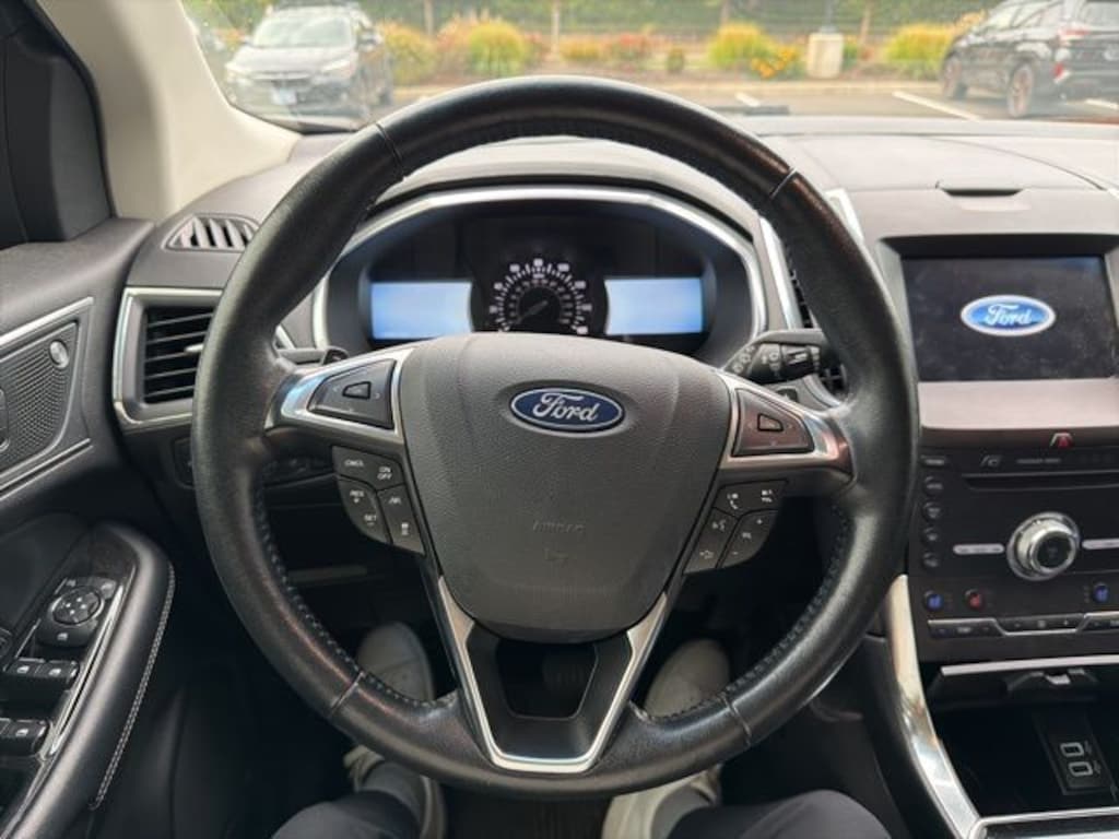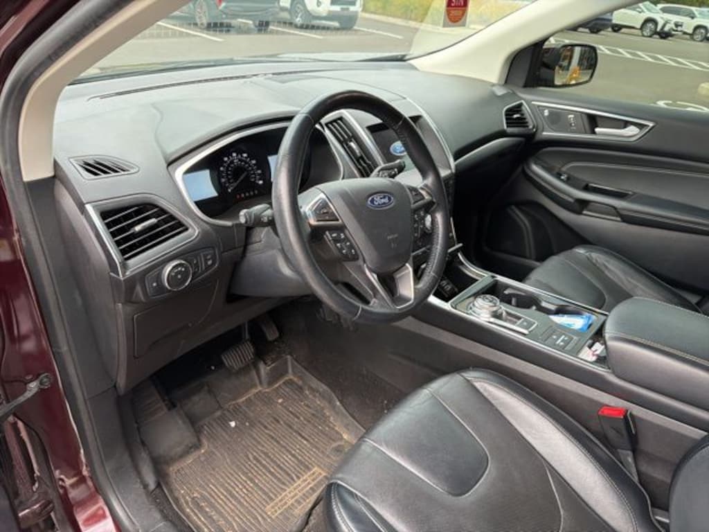 We Buy cars- Fast, Fair and Easy This 2019 Maroon Ford Edge Titanium AWD is well equipped and includes these features and benefits: Equipment Group 301A (Adaptive Cruise Control w/Stop & Go, Adaptive LED Headlamps, Auto-Dimming Driver's Sideview Mirror, Enhanced Active Park Assist, Evasive Steering Assist, Front 180 Degree Camera, Heated Rear-Seats, Leather Trimmed Heated/Cooled Bucket Seats, Panoramic Vista Roof, and Voice-Activated Touchscreen Navigation System), AWD, 12 Speakers, 4-Wheel Disc Brakes, ABS brakes, Air Conditioning, Alloy wheels, AM/FM radio: SiriusXM, AppLink/Apple CarPlay and Android Auto, Auto High-beam Headlights, Auto tilt-away steering wheel, Auto-dimming Rear-View mirror, Automatic temperature control, Axle Ratio: TBA, Brake assist, Bumpers: body-color, CD player, Compass, Delay-off headlights, Driver door bin, Driver vanity mirror, Dual front impact airbags, Dual front side impact airbags, Electronic Stability Control, Emergency communication system: SYNC 3 911 Assist, Four wheel independent suspension, Front anti-roll bar, Front Bucket Seats, Front Center Armrest w/Storage, Front dual zone A/C, Front fog lights, Front reading lights, Fully automatic headlights, Garage door transmitter, Heated door mirrors, Heated front seats, Illuminated entry, Knee airbag, Leather-Trimmed Heated Sport Bucket Seats, Low tire pressure warning, Memory seat, Occupant sensing airbag, Outside temperature display, Overhead airbag, Overhead console, Panic alarm, Passenger door bin, Passenger vanity mirror, Power door mirrors, Power driver seat, Power Liftgate, Power passenger seat, Power steering, Power windows, Radio: B&O Sound System by Bang & Olufsen, Rain sensing wipers, Rear anti-roll bar, Rear Parking Sensors, Rear reading lights, Rear seat center armrest, Rear window defroster, Rear window wiper, Remote keyless entry, Roof rack: rails only, Security system, SiriusXM Radio, Speed control, Speed-Sensitive Wipers, Split folding rear seat, Spoiler, Steering wheel memory, Steering wheel mounted audio controls, SYNC 3 Communications & Entertainment System, Tachometer, Telescoping steering wheel, Tilt steering wheel, Traction control, Trip computer, Turn signal indicator mirrors, Variably intermittent wipers, and Wheels: 19" Nickel-Painted Aluminum.
