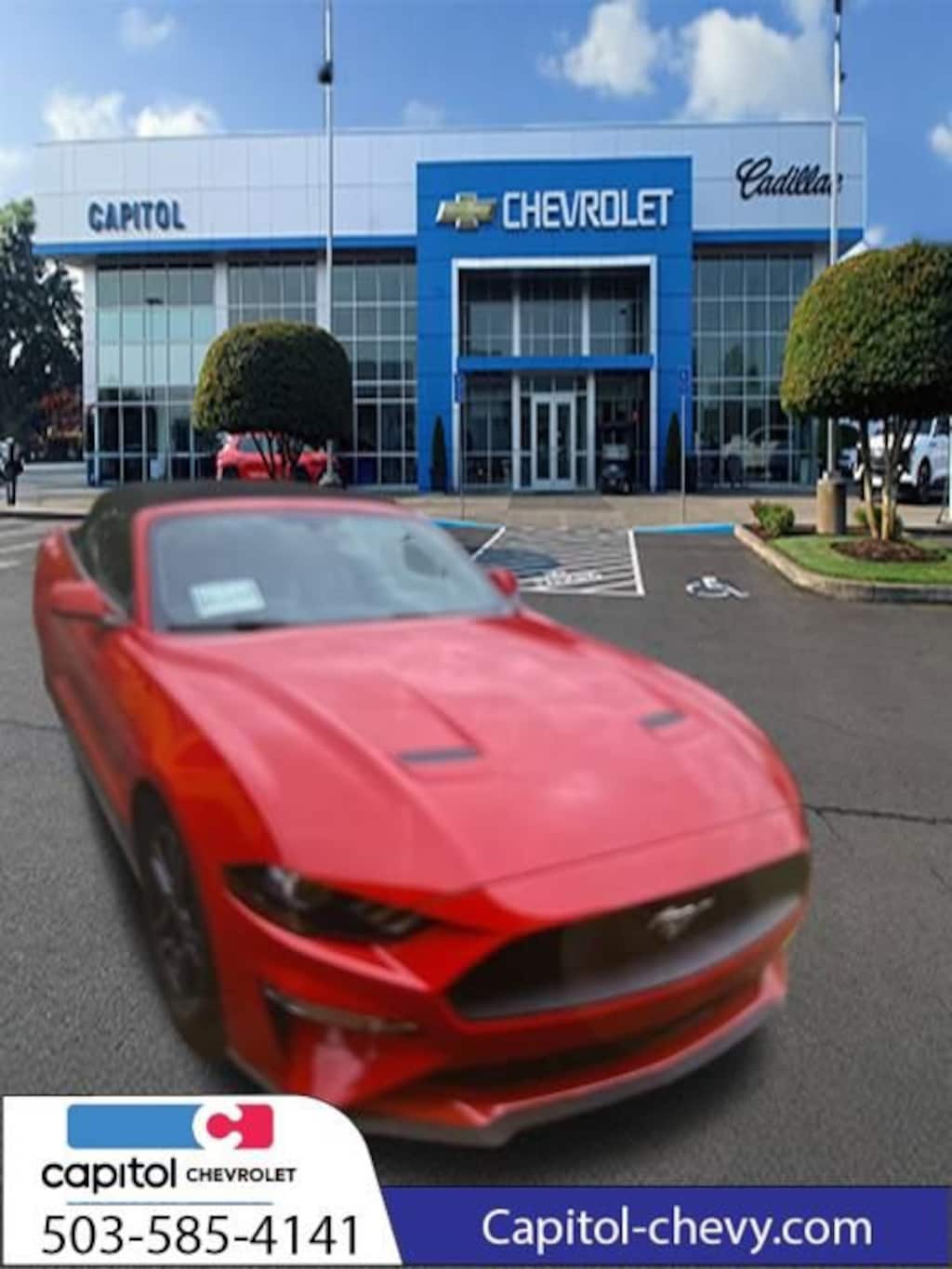 Recent Arrival! 20/28 City/Highway MPGAwards:* 2019 KBB.com 10 Coolest Cars Under $30,000We Buy cars- Fast, Fair and Easy This 2019 Race Red Ford Mustang EcoBoost Premium RWD is well equipped and includes these features and benefits: 4-Wheel Disc Brakes, ABS brakes, Air Conditioning, Alloy wheels, AM/FM Stereo, Auto-dimming Rear-View mirror, Brake assist, Bumpers: body-color, Compass, Convertible roof lining, Delay-off headlights, Driver door bin, Driver vanity mirror, Dual front impact airbags, Dual front side impact airbags, Electronic Stability Control, Emergency communication system: 911 Assist, Exterior Parking Camera Rear, Four wheel independent suspension, Front anti-roll bar, Front Bucket Seats, Front Center Armrest, Front reading lights, Fully automatic headlights, Glass rear window, Illuminated entry, Knee airbag, Leather Shift Knob, Low tire pressure warning, Occupant sensing airbag, Outside temperature display, Overhead console, Panic alarm, Passenger door bin, Passenger vanity mirror, Power convertible roof, Power door mirrors, Power steering, Power windows, Radio data system, Rear anti-roll bar, Rear window defroster, Remote keyless entry, Security system, SiriusXM Radio, Speed control, Speed-sensing steering, Speed-Sensitive Wipers, Steering wheel mounted audio controls, SYNC 3 Communications & Entertainment System, Tachometer, Telescoping steering wheel, Tilt steering wheel, Traction control, Trip computer, Variably intermittent wipers, Voltmeter, and Wheels: 18 x 8 Machined-Face Aluminum.