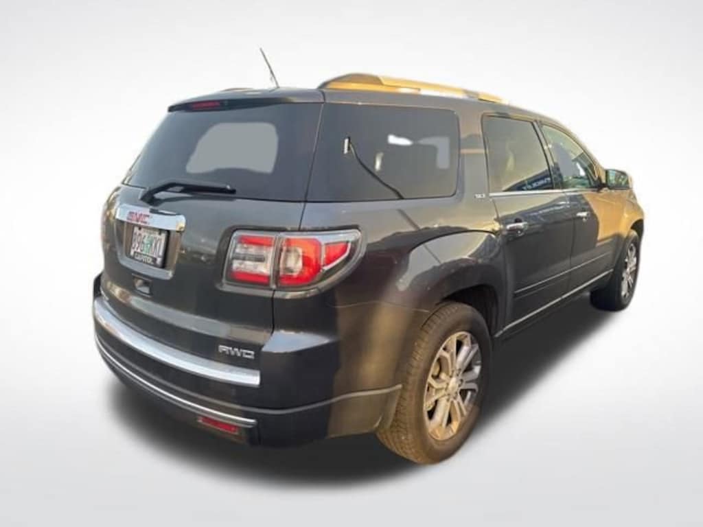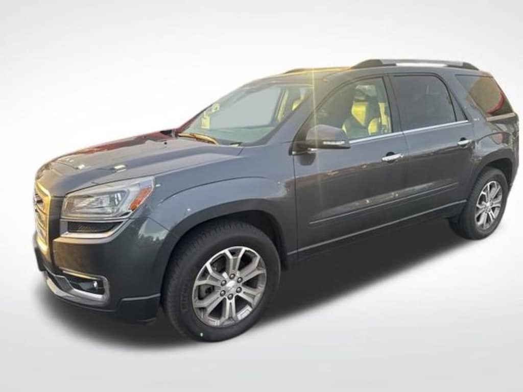We Buy cars- Fast, Fair and Easy This 2014 Cyber Gray Metallic GMC Acadia SLT-1 AWD is well equipped and includes these features and benefits: Acoustical Insulation Package, Preferred Equipment Group 4SA (2-Way Power Front Passenger Seat, 8-Way Power Driver Seat, Body-Color Bodyside Moldings, Body-Color Heated Power-Adjustable Outside Mirrors, Bose Premium 10-Speaker Audio System, Carpeted Removable Front 2nd & 3rd Row Floor Mats, Dual Downturn Tailpipe Exhaust, Inside Rear-View Auto-Dimming Mirror, Integral Spotter Blind-Zone Mirrors, Leather-Wrapped Steering Wheel, Power Rear Liftgate Body, Power Windows w/Driver Express-Down, Rear Audio System Controls, Remote Vehicle Start, Steering Wheel Mounted Audio Controls, Tilt & Telescopic Steering Column, Tri-Zone Automatic Climate Control, Universal Home Remote, and Variable Effort Power Steering), Exterior Parking Camera Rear, Fully automatic headlights, Heated front seats, 10 Speakers, 19 x 7.5 Aluminum (4) Wheels, 3.16 Axle Ratio, 3rd row seats: split-bench, 4-Wheel Disc Brakes, 7-Passenger Seating (2-2-3 Seating Configuration), ABS brakes, Air Conditioning, Alloy wheels, AM/FM radio: SiriusXM, Auto-dimming Rear-View mirror, Automatic temperature control, Bodyside moldings, Brake assist, Bumpers: body-color, CD player, Compass, Delay-off headlights, Driver door bin, Driver vanity mirror, Dual front impact airbags, Dual front side impact airbags, Electronic Stability Control, Emergency communication system: OnStar Directions & Connections, Four wheel independent suspension, Front anti-roll bar, Front Bucket Seats, Front Center Armrest w/Storage, Front dual zone A/C, Front fog lights, Front License Plate Bracket, Front reading lights, Garage door transmitter, Heated door mirrors, Heated Driver & Front Passenger Seats, Illuminated entry, Leather Shift Knob, Leather-Appointed Seat Trim, Low tire pressure warning, Occupant sensing airbag, Outside temperature display, Overhead airbag, Overhead console, Panic alarm, Passenger door bin, Passenger vanity mirror, Power door mirrors, Power driver seat, Power Liftgate, Power passenger seat, Power steering, Power windows, Radio data system, Radio: Color Touch AM/FM/HD/CD w/IntelliLink, Rear air conditioning, Rear anti-roll bar, Rear audio controls, Rear reading lights, Rear window defroster, Rear window wiper, Reclining Bucket Seats, Remote keyless entry, Ride & Handling Suspension, Roof rack: rails only, Security system, SiriusXM Satellite Radio, Speed control, Speed-sensing steering, Spoiler, Steering wheel mounted audio controls, Tachometer, Telescoping steering wheel, Tilt steering wheel, Traction control, Trip computer, Turn signal indicator mirrors, Variably intermittent wipers, and Voltmeter.
