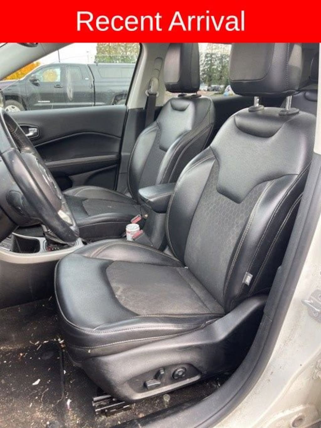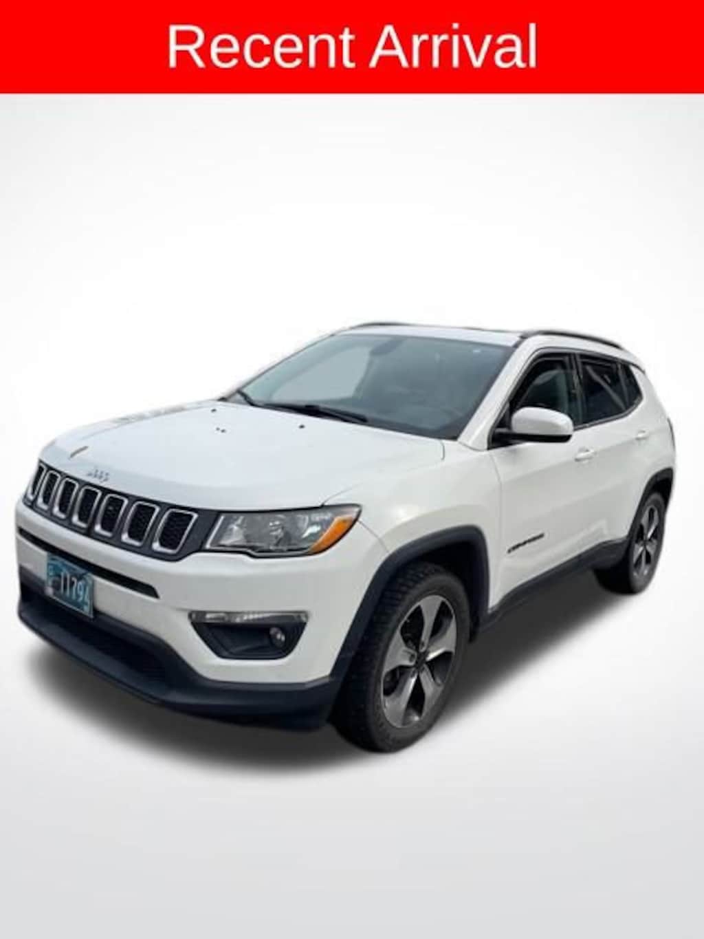 We Buy cars- Fast, Fair and Easy This 2018 White Clearcoat Jeep Compass Latitude FWD is well equipped and includes these features and benefits: Popular Equipment Group (115V Auxiliary Power Outlet, Auto-Dimming Rear-View Mirror, Power 8-Way Driver/Manual 6-Way Passenger Seats, and Remote Start System), Quick Order Package 28J, 3.502 Axle Ratio, 4-Wheel Disc Brakes, 6 Speakers, ABS brakes, Air Conditioning, Alloy wheels, AM/FM radio, Anti-whiplash front head restraints, Brake assist, Bumpers: body-color, Compass, Delay-off headlights, Driver door bin, Driver vanity mirror, Dual front impact airbags, Dual front side impact airbags, Electronic Stability Control, Four wheel independent suspension, Front anti-roll bar, Front Bucket Seats, Front Center Armrest w/Storage, Front fog lights, Front reading lights, Fully automatic headlights, Heated door mirrors, Illuminated entry, Knee airbag, Leather Shift Knob, Low tire pressure warning, Occupant sensing airbag, Outside temperature display, Overhead airbag, Overhead console, Panic alarm, ParkView Rear Back-Up Camera, Passenger door bin, Passenger vanity mirror, Power door mirrors, Power Front/Fixed Rear Full Sunroof, Power Liftgate, Power steering, Power windows, Premium Cloth/Vinyl Bucket Seats, Radio: Uconnect 3 w/5 Display, Radio: Uconnect 4 w/7 Display, Rear anti-roll bar, Rear seat center armrest, Rear window defroster, Rear window wiper, Remote keyless entry, Roof rack: rails only, Speed control, Split folding rear seat, Spoiler, Steering wheel mounted audio controls, Tachometer, Telescoping steering wheel, Tilt steering wheel, Traction control, Trip computer, Variably intermittent wipers, Wheels: 17 x 7.0 Silver Painted Aluminum, and Wheels: 18 x 7.0 Polished/Black Pockets Aluminum.