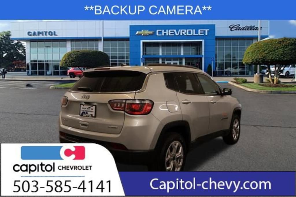 We Buy cars- Fast, Fair and Easy This 2025 Silver Zynith Metallic Clearcoat Jeep Compass Latitude 4WD is well equipped and includes these features and benefits: Quick Order Package 29J, 3.73 Final Drive Ratio, 4-Wheel Disc Brakes, 6 Speakers, ABS brakes, Air Conditioning, Alloy wheels, AM/FM radio: SiriusXM, Apple CarPlay/Android Auto, Auto High-beam Headlights, Brake assist, Bumpers: body-color, Compass, Delay-off headlights, Driver door bin, Driver vanity mirror, Dual front impact airbags, Dual front side impact airbags, Electronic Stability Control, Emergency communication system: Jeep Connect, Four wheel independent suspension, Front anti-roll bar, Front Bucket Seats, Front Center Armrest w/Storage, Front fog lights, Front License Plate Bracket, Front reading lights, Fully automatic headlights, Heated door mirrors, Heated front seats, Heated steering wheel, Illuminated entry, Knee airbag, Leather Shift Knob, Leather steering wheel, Low tire pressure warning, Occupant sensing airbag, Outside temperature display, Overhead airbag, Overhead console, Panic alarm, ParkView Rear Back-Up Camera, Passenger door bin, Passenger vanity mirror, Power door mirrors, Power steering, Power windows, Premium audio system: UConnect 5, Premium Cloth/Vinyl Bucket Seats, Radio: Uconnect 5 w/8.4 Display, Rear anti-roll bar, Rear seat center armrest, Rear window defroster, Rear window wiper, Remote keyless entry, Security system, Speed control, Split folding rear seat, Spoiler, Steering wheel mounted audio controls, Tachometer, Telescoping steering wheel, Tilt steering wheel, Traction control, Trip computer, Variably intermittent wipers, and Wheels: 17 x 7 Aluminum (DISC)
