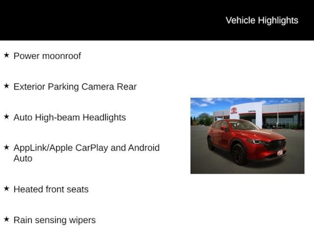 All roads lead to Capitol Toyota and we are excited to offer this 2023 Mazda CX-5 2.5 S Preferred Package. This stunning vehicle in the vibrant Red exterior color is equipped with an impressive list of features that are sure to captivate any discerning driver.