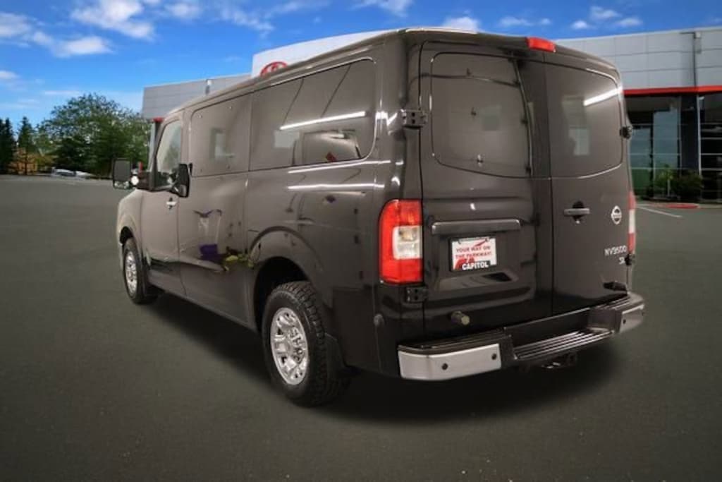 We Buy cars- Fast, Fair and Easy This 2017 Super Black Nissan NV Passenger SL RWD is well equipped and includes these features and benefits: Exterior Parking Camera Rear, Heated front seats, 3.36 Axle Ratio, 3rd row seats: split-bench, 4-Wheel Disc Brakes, 4th-Row Bench Seat, 6 Speakers, 7.5J x 17 Chrome-Clad Steel Wheels, ABS brakes, Air Conditioning, All Season Rubber Floor Mats, AM/FM radio: SiriusXM, Auto-dimming Rear-View mirror, Automatic temperature control, Brake assist, Bumpers: chrome, CD player, Compass, Driver door bin, Dual front impact airbags, Dual front side impact airbags, Electronic Stability Control, Front anti-roll bar, Front Bucket Seats, Front Center Armrest w/Storage, Front dual zone A/C, Front fog lights, Front reading lights, Front wheel independent suspension, Heated Front Bucket Seats, Illuminated entry, Leather steering wheel, Leather-Appointed Seat Trim, Low tire pressure warning, Navigation System, Outside temperature display, Overhead airbag, Overhead console, Panic alarm, Passenger door bin, Power door mirrors, Power driver seat, Power steering, Power windows, Radio data system, Radio: NissanConnect w/Navigation & Mobile Apps, Rear air conditioning, Rear anti-roll bar, Rear reading lights, Rear window defroster, Remote keyless entry, Security system, Speed control, Speed-sensing steering, Speed-Sensitive Wipers, Splash Guards (Set of 4), Steering wheel mounted audio controls, Tachometer, Tilt steering wheel, Traction control, Trip computer, Variably intermittent wipers, and Voltmeter.