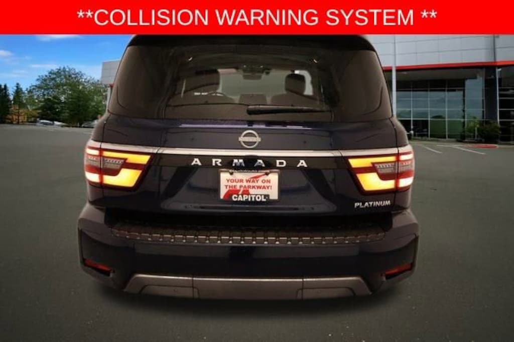 We Buy cars- Fast, Fair and Easy This 2024 Hermosa Blue Pearl Nissan Armada Platinum 4WD is well equipped and includes these features and benefits: Captain's Chairs Package (2nd Row Captain's Chairs and 2nd Row Center Console w/Padded Armrest), Cargo Package, 13 Speakers, 2.937 Axle Ratio, 3rd Row Carpeted Floor Mats - Captain Seat, 3rd row seats: split-bench, 4-Wheel Disc Brakes, ABS brakes, Air Conditioning, Alloy wheels, AM/FM radio: SiriusXM, Anti-whiplash front head restraints, Auto High-beam Headlights, Auto tilt-away steering wheel, Auto-dimming door mirrors, Auto-dimming Rear-View mirror, Auto-leveling suspension, Automatic temperature control, Brake assist, Bumpers: body-color, Climate-Controlled Front Bucket Seats, Dash Cam - Dual Camera Drive Recorder, Delay-off headlights, Driver door bin, Driver vanity mirror, Dual front impact airbags, Dual front side impact airbags, Electronic Stability Control, Emergency communication system: NissanConnect Services, Exterior Parking Camera Rear, Four wheel independent suspension, Front anti-roll bar, Front Bucket Seats, Front Center Armrest, Front dual zone A/C, Front fog lights, Front reading lights, Fully automatic headlights, Garage door transmitter: HomeLink, Heated door mirrors, Heated front seats, Heated rear seats, Heated steering wheel, HVAC memory, Illuminated entry, Illuminated Kick Plates, Illuminated Scuff Plate, Knee airbag, Leather Shift Knob, Leather steering wheel, Low tire pressure warning, Memory seat, Navigation System, Nissan USB Charging Cable Set, Occupant sensing airbag, Outside temperature display, Overhead airbag, Overhead console, Panic alarm, Passenger door bin, Passenger vanity mirror, Power door mirrors, Power driver seat, Power Liftgate, Power moonroof, Power passenger seat, Power steering, Power windows, Quilted Leather Seat Trim, Radio: NissanConnect w/SiriusXM, Rain sensing wipers, Rear air conditioning, Rear anti-roll bar, Rear reading lights, Rear seat center armrest, Rear window defroster, Rear window wiper, Reclining 3rd row seat, Remote keyless entry, Roof Rail Cross Bars - Gun Metal, Security system, Speed control, Speed-sensing steering, Speed-Sensitive Wipers, Split folding rear seat, Spoiler, Steering wheel memory, Steering wheel mounted audio controls, Tachometer, Telescoping steering wheel, Tilt steering wheel, Traction control, Trip computer, Turn signal indicator mirrors, Variably intermittent wipers, Ventilated front seats, Voltmeter, Welcome Lighting, and Wheels: 22 x 8J Machine-Faced w/Tinted Clear Coat.