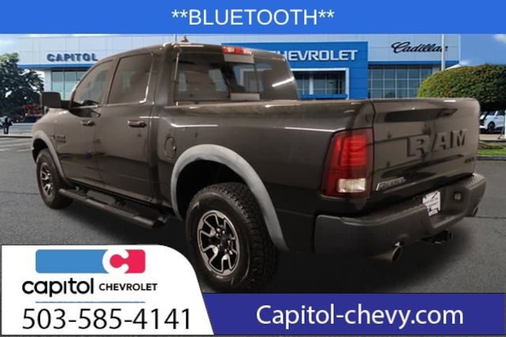 We Buy cars- Fast, Fair and Easy This 2016 Brilliant Black Crystal Pearlcoat Ram 1500 Rebel 4WD is well equipped and includes these features and benefits: Luxury Group (Auto-Dimming Exterior Mirrors, Exterior Mirrors Courtesy Lamps, Exterior Mirrors w/Supplemental Signals, Glove Box Lamp, LED Bed Lighting, Overhead Console w/Garage Door Opener, Power Folding Mirrors, Power Heated Fold-Away Mirrors, Rear Dome w/On/Off Switch Lamp, Rear-View Auto-Dimming Mirror w/Microphone, Sun Visors w/Illuminated Vanity Mirrors, Underhood Lamp, and Universal Garage Door Opener), Protection Group, Quick Order Package 26W Rebel (Dual Rear Exhaust w/Bright Tips, Flat Black 5.7L Hemi Badge, Flat Black Ram 1500 Badge, and Ram Glove Box Badge), Rear Camera & Park Assist Group (ParkSense Rear Park Assist System, ParkView Rear Back-Up Camera, and Rear View Auto Dim Mirror w/Display), Remote Start & Security Alarm Group (Security Alarm), Power Sunroof, 1 Yr. Trial (Registration Required), 3.92 Rear Axle Ratio, 32 Gallon Fuel Tank, 4-Wheel Disc Brakes, 5-Year SiriusXM Traffic Service, 5-Year SiriusXM Travel Link Service, 6 Speakers, 8.4 Touchscreen Display, 9 Alpine Speakers w/Subwoofer, ABS brakes, Air Conditioning, Alloy wheels, AM/FM radio, Anti-Spin Differential Rear Axle, Auto-leveling suspension, Brake assist, Compass, Delay-off headlights, Driver door bin, Dual front impact airbags, Dual front side impact airbags, Electronic Shift, Electronic Stability Control, For Details Visit DriveUconnect.com, Front anti-roll bar, Front Bucket Seats, Front Center Armrest w/Storage, Front fog lights, Front reading lights, Front wheel independent suspension, Fully automatic headlights, GPS Antenna Input, GPS Navigation, HD Radio, Heated door mirrors, Heated front seats, Heated steering wheel, Illuminated entry, Integrated Voice Command w/Bluetooth, Keyless Enter-N-Go, Leather steering wheel, Low tire pressure warning, Media Hub (SD, USB, AUX), Occupant sensing airbag, Outside temperature display, Overhead airbag, Overhead console, Panic alarm, Passenger door bin, Passenger vanity mirror, Power door mirrors, Power driver seat, Power passenger seat, Power steering, Power windows, Premium Cloth Seats w/Emboss Tread Pattern, Radio data system, Radio: Uconnect 5.0, Radio: Uconnect 8.4 NAV, Rear anti-roll bar, Rear seat center armrest, Rear step bumper, Rebel Instrument Cluster, Remote keyless entry, Remote Proximity Keyless Entry, Remote SD Card Slot, Single Disc Remote CD Player, SIRIUSXM Satellite Radio, SIRIUSXM Traffic, SiriusXM Travel Link, Speed control, Split folding rear seat, Steering wheel mounted audio controls, Tachometer, Tilt steering wheel, Tip Start, Traction control, Trip computer, Uconnect Access, Uconnect Access 1 Year Trial, Variably intermittent wipers, Voltmeter, and Wheels: 17 x 8 Aluminum w/Matte Black PockeT.