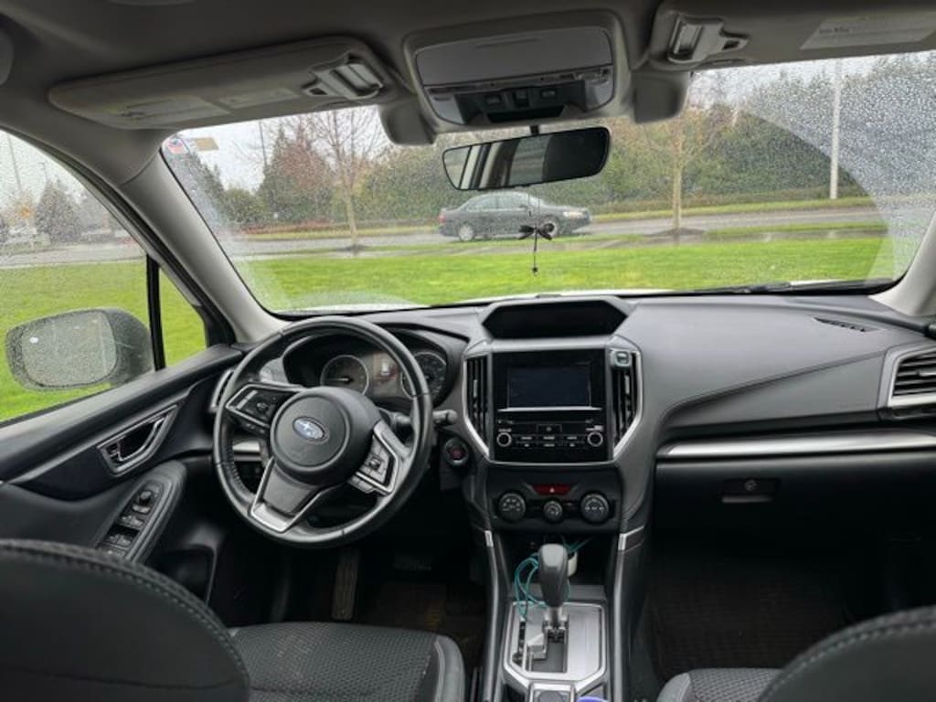 We Buy cars- Fast, Fair and Easy This 2021 Crystal White Pearl Subaru Forester Premium AWD is well equipped and includes these features and benefits: Popular Package #1 (All-Weather Floor Liners, Auto-Dimming Exterior Mirror w/Approach Lighting, Auto-Dimming Mirror w/Compass & HomeLink, Cargo Tray, and Rear Bumper Cover), Standard Model, 3.70 Axle Ratio, 4-Wheel Disc Brakes, 6 Speakers, ABS brakes, Air Conditioning, Alloy wheels, AM/FM radio: SiriusXM, Auto High-beam Headlights, Automatic temperature control, Brake assist, Bumpers: body-color, Cargo Net, CD player, Cloth Upholstery, Driver door bin, Driver vanity mirror, Dual front impact airbags, Dual front side impact airbags, Electronic Stability Control, Emergency communication system: STARLINK Safety and Security (Subscription Required), Exterior Parking Camera Rear, Four wheel independent suspension, Front anti-roll bar, Front Bucket Seats, Front Center Armrest, Front fog lights, Front reading lights, Fully automatic headlights, Heated door mirrors, Heated Front Bucket Seats, Heated front seats, Illuminated entry, Knee airbag, Low tire pressure warning, Occupant sensing airbag, Outside temperature display, Overhead airbag, Overhead console, Panic alarm, Passenger door bin, Passenger vanity mirror, Power door mirrors, Power driver seat, Power moonroof: Panoramic, Power steering, Power windows, Radio data system, Radio: Subaru Starlink 6.5" Multimedia Plus System, Rear anti-roll bar, Rear seat center armrest, Rear window defroster, Rear window wiper, Remote keyless entry, Rockford Fosgate Audio Upgrade, Roof rack: rails only, Security system, Speed control, Speed-sensing steering, Splash Guards, Split folding rear seat, Spoiler, STARLINK/Apple CarPlay/Android Auto, Steering wheel mounted audio controls, Tachometer, Telescoping steering wheel, Tilt steering wheel, Traction control, Trip computer, Variably intermittent wipers, and Wheels: 17" x 7.0J Black Machine Finish Alloy.