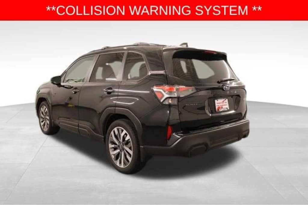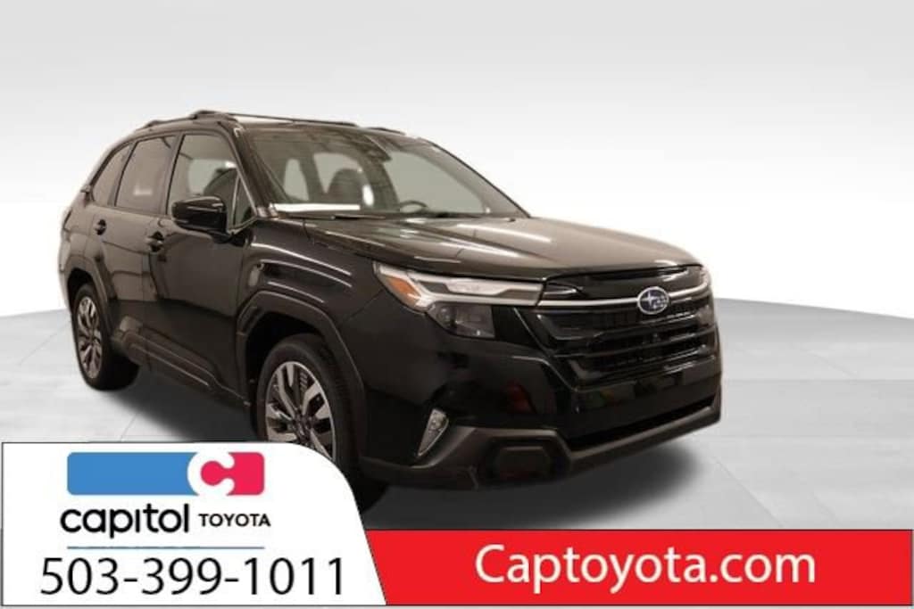 We Buy cars- Fast, Fair and Easy This 2025 Crystal Black Silica Subaru Forester Touring AWD is well equipped and includes these features and benefits: Popular Package - Touring (All-Weather Floor Liners, Auto-Dimming Exterior Mirror w/Approach Light, Cargo Tray, LED Upgrade, Rear Bumper Cover, Rear Seatback Protector, and Splash Guards), Standard Model, 11 Speakers, 4-Wheel Disc Brakes, ABS brakes, Air Conditioning, Alloy wheels, AM/FM radio: SiriusXM with 360L, Anti-whiplash front head restraints, Auto High-beam Headlights, Automatic temperature control, Brake assist, Bumpers: body-color, Crossbar Set - Aero, Door Projector Lights, Driver door bin, Driver vanity mirror, Dual front impact airbags, Dual front side impact airbags, Electronic Stability Control, Emergency communication system: MySubaru Safety (3-year free trial), Exterior Parking Camera Rear, Four wheel independent suspension, Front anti-roll bar, Front Bucket Seats, Front Center Armrest, Front dual zone A/C, Front fog lights, Front reading lights, Fully automatic headlights, harman/kardon® Speakers, Heated & Ventilated Front Bucket Seats, Heated door mirrors, Heated front seats, Heated rear seats, Heated steering wheel, HVAC memory, Illuminated entry, Knee airbag, Leather steering wheel, Low tire pressure warning, Memory seat, Navigation System, Occupant sensing airbag, Outside temperature display, Overhead airbag, Overhead console, Panic alarm, Passenger door bin, Passenger vanity mirror, Perforated Leather-Trimmed Upholstery, Power door mirrors, Power driver seat, Power Liftgate, Power moonroof: Panoramic, Power passenger seat, Power steering, Power windows, Radio data system, Radio: Subaru 11.6 Multimedia Navigation System, Rear anti-roll bar, Rear seat center armrest, Rear window defroster, Rear window wiper, Remote keyless entry, Security system, Side Sill Plates - Front, Speed control, Speed-sensing steering, Split folding rear seat, Spoiler, Steering wheel mounted audio controls, Tachometer, Telescoping steering wheel, Tilt steering wheel, Traction control, Trip computer, Turn signal indicator mirrors, Variably intermittent wipers, Ventilated front seats, and Wheels: 19 x 7.5 J Dark Gray Aluminum-Alloy.