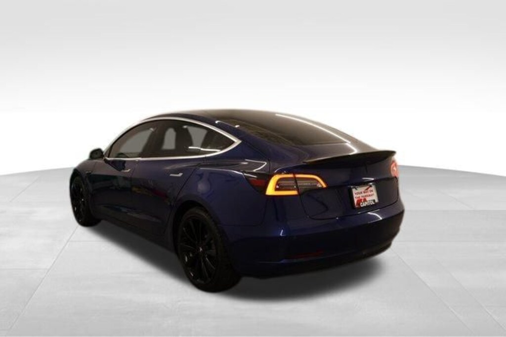 We Buy cars- Fast, Fair and Easy This 2018 Deep Blue Metallic Tesla Model 3 Mid Range RWD is well equipped and includes these features and benefits: 15 Speakers, 4-Wheel Disc Brakes, ABS brakes, Air Conditioning, Alloy wheels, Auto High-beam Headlights, Auto-dimming door mirrors, Auto-dimming Rear-View mirror, Automatic temperature control, Brake assist, Bumpers: body-color, Compass, Delay-off headlights, Driver door bin, Driver vanity mirror, Dual front impact airbags, Dual front side impact airbags, Electronic Stability Control, Exterior Parking Camera Rear, Four wheel independent suspension, Front anti-roll bar, Front Bucket Seats, Front Center Armrest, Front dual zone A/C, Front fog lights, Front reading lights, Fully automatic headlights, Garage door transmitter: Homelink, Genuine wood dashboard insert, Heated door mirrors, Heated Front Bucket Seats, Heated front seats, Heated rear seats, Illuminated entry, Knee airbag, Lane Departure Warning System, Low tire pressure warning, Memory seat, Navigation System, Occupant sensing airbag, Outside temperature display, Overhead airbag, Passenger door bin, Passenger vanity mirror, Power door mirrors, Power driver seat, Power passenger seat, Power steering, Power windows, Radio data system, Radio: FM w/Premium Audio System, Rear reading lights, Rear seat center armrest, Rear window defroster, Remote keyless entry, Security system, Speed control, Speed-sensing steering, Split folding rear seat, Steering wheel memory, Steering wheel mounted A/C controls, Steering wheel mounted audio controls, Synthetic Leather Seat Trim, Telescoping steering wheel, Tilt steering wheel, Traction control, Trip computer, Variably intermittent wipers, and Wheels: 18" Aero.