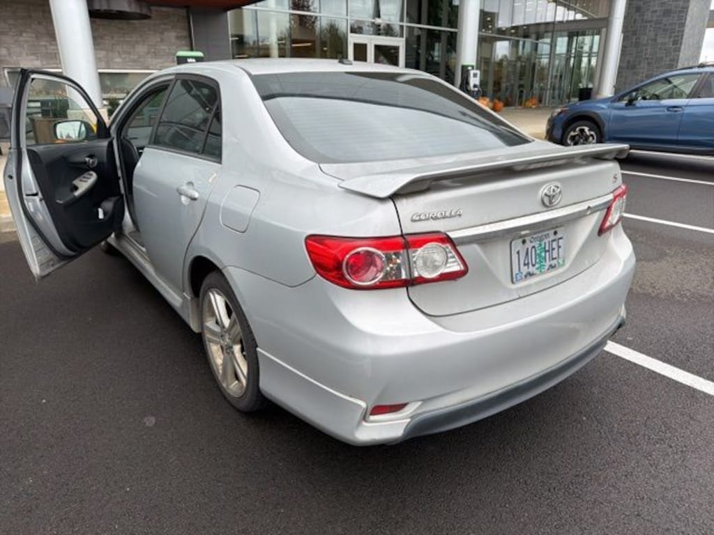 We Buy cars- Fast, Fair and Easy This 2013 Classic Silver Metallic Toyota Corolla S FWD is well equipped and includes these features and benefits: 6 Speakers, ABS brakes, Air Conditioning, Alloy wheels, AM/FM radio, AM/FM/CD Player w/MP3/WMA Capability, Anti-whiplash front head restraints, Brake assist, Bumpers: body-color, CD player, Driver door bin, Driver vanity mirror, Dual front impact airbags, Dual front side impact airbags, Electronic Stability Control, Front anti-roll bar, Front Bucket Seats, Front Center Armrest, Front fog lights, Front reading lights, Front Sport Bucket Seats, Front wheel independent suspension, Heated door mirrors, Illuminated entry, Low tire pressure warning, Occupant sensing airbag, Outside temperature display, Overhead airbag, Panic alarm, Passenger door bin, Passenger vanity mirror, Power door mirrors, Power steering, Power windows, Radio data system, Rear anti-roll bar, Rear window defroster, Remote keyless entry, Speed control, Speed-sensing steering, Split folding rear seat, Spoiler, Sport Fabric Seat Trim, Steering wheel mounted audio controls, Tachometer, Telescoping steering wheel, Tilt steering wheel, Traction control, Trip computer, and Wheels: 6.5" x 16" 5-Spoke Alloy.
