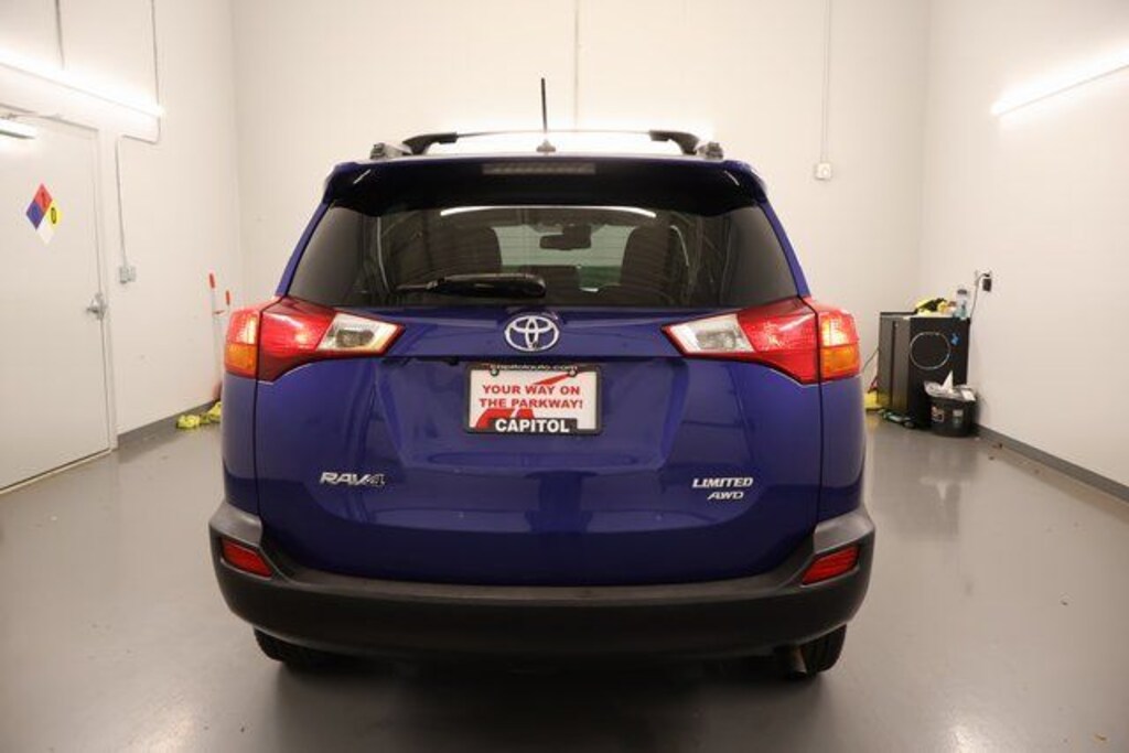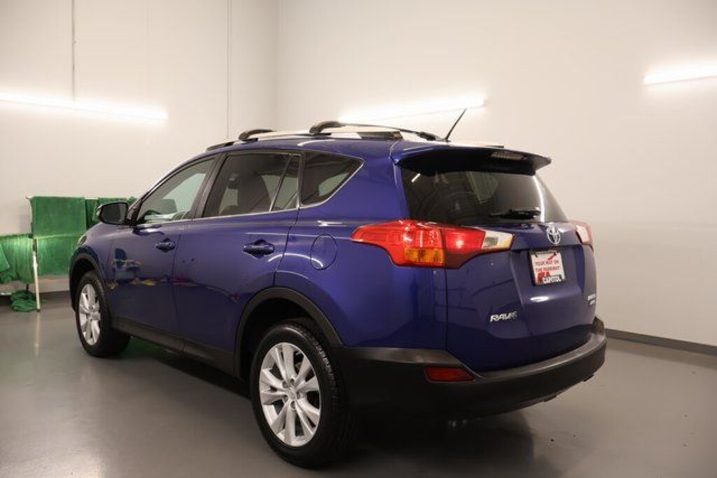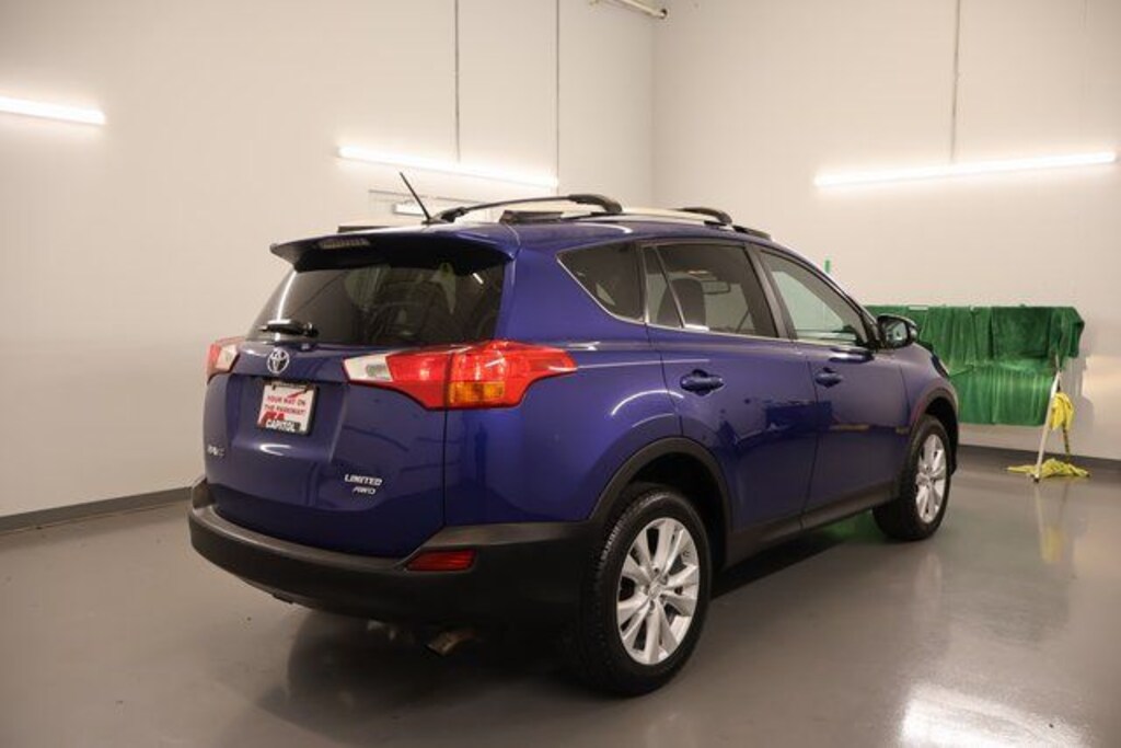 We Buy cars- Fast, Fair and Easy This 2015 Blue Crush Metallic Toyota RAV4 Limited AWD is well equipped and includes these features and benefits: Technology Package (4 Projector w/AHB Headlamp and Lane Change Assist), 4-Wheel Disc Brakes, 4.071 Axle Ratio, 6 Speakers, ABS brakes, Air Conditioning, Alloy wheels, AM/FM radio: SiriusXM, Auto-dimming Rear-View mirror, Automatic temperature control, Brake assist, Bumpers: body-color, CD player, Driver door bin, Driver vanity mirror, Dual front impact airbags, Dual front side impact airbags, Electronic Stability Control, Exterior Parking Camera Rear, Four wheel independent suspension, Front anti-roll bar, Front Bucket Seats, Front Center Armrest, Front dual zone A/C, Front fog lights, Front reading lights, Fully automatic headlights, Heated door mirrors, Heated front seats, Heated Front Sport Seats, Illuminated entry, Knee airbag, Leather Shift Knob, Leather steering wheel, Low tire pressure warning, Memory seat, Navigation System, Occupant sensing airbag, Outside temperature display, Overhead airbag, Overhead console, Panic alarm, Passenger door bin, Passenger vanity mirror, Power door mirrors, Power driver seat, Power Liftgate, Power moonroof, Power steering, Power windows, Radio data system, Radio: Entune Premium Audio with Navigation, Rear anti-roll bar, Rear seat center armrest, Rear window defroster, Rear window wiper, Remote keyless entry, Roof rack: rails only, SofTex Seat Trim, Speed control, Speed-sensing steering, Split folding rear seat, Spoiler, Steering wheel mounted audio controls, Tachometer, Telescoping steering wheel, Tilt steering wheel, Traction control, Trip computer, Turn signal indicator mirrors, Variably intermittent wipers, and Wheels: 18" x 7.5J Alloy ALM.