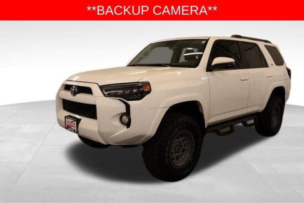We Buy cars- Fast, Fair and Easy This 2019 Super White Toyota 4Runner SR5 4WD is well equipped and includes these features and benefits: 17 x 7.0 6-Spoke Alloy Wheels, 3.727 Axle Ratio, 4-Wheel Disc Brakes, 8 Speakers, ABS brakes, Air Conditioning, Alloy wheels, AM/FM radio: SiriusXM, Anti-whiplash front head restraints, Brake assist, Bumpers: body-color, CD player, Driver door bin, Driver vanity mirror, Dual front impact airbags, Dual front side impact airbags, Electronic Stability Control, Emergency communication system: Safety Connect, Exterior Parking Camera Rear, Front anti-roll bar, Front Bucket Seats, Front Center Armrest, Front fog lights, Front reading lights, Front wheel independent suspension, Heated door mirrors, Illuminated entry, Knee airbag, Leather Shift Knob, Leather steering wheel, Low Fabric Seat Trim, Low tire pressure warning, Occupant sensing airbag, Outside temperature display, Overhead airbag, Overhead console, Panic alarm, Passenger door bin, Passenger vanity mirror, Power door mirrors, Power driver seat, Power steering, Power windows, Radio: Entune Audio Plus, Rear anti-roll bar, Rear seat center armrest, Rear window defroster, Rear window wiper, Remote keyless entry, Roof rack: rails only, Security system, Speed control, Speed-sensing steering, Split folding rear seat, Spoiler, Steering wheel mounted audio controls, Tachometer, Telescoping steering wheel, Tilt steering wheel, Traction control, Trip computer, and Variably intermittent wipers.