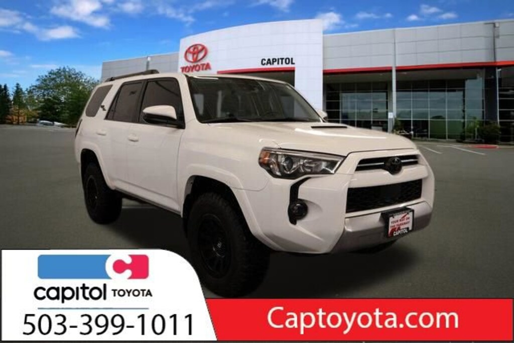 Recent Arrival! We Buy cars- Fast, Fair and Easy This 2023 Ice Cap Toyota 4Runner TRD Off-Road 4WD is well equipped and includes these features and benefits: 3.727 Axle Ratio, 4-Wheel Disc Brakes, 8 Speakers, ABS brakes, Air Conditioning, Alloy wheels, AM/FM radio: SiriusXM, Anti-whiplash front head restraints, Apple CarPlay/Android Auto, Auto High-beam Headlights, Black Roof Rails, Brake assist, Bumpers: body-color, Compass, Driver door bin, Driver vanity mirror, Dual front impact airbags, Dual front side impact airbags, Electronic Stability Control, Emergency communication system: Safety Connect (1-year trial), Exterior Parking Camera Rear, Fabric Seat Trim, Front anti-roll bar, Front Bucket Seats, Front Center Armrest, Front fog lights, Front reading lights, Front wheel independent suspension, Heated door mirrors, Illuminated entry, Knee airbag, Leather Shift Knob, Low tire pressure warning, Occupant sensing airbag, Outside temperature display, Overhead airbag, Overhead console, Panic alarm, Passenger door bin, Passenger vanity mirror, Power door mirrors, Power driver seat, Power steering, Power windows, Radio: Audio Plus, Rear anti-roll bar, Rear seat center armrest, Rear window defroster, Rear window wiper, Remote keyless entry, Security system, Speed control, Speed-sensing steering, Split folding rear seat, Spoiler, Steering wheel mounted audio controls, Tachometer, Telescoping steering wheel, Tilt steering wheel, Traction control, Trip computer, Variably intermittent wipers, and Wheels: 17 Unique 7-Spoke Off-Road Alloy.